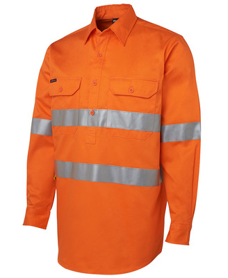 100% Cotton for 100% comfort,190gsm double pre-shrunk twill,Complies with Standard AS/NZS 4399:1996 for UPF Protection,Complies with Standards AS/NZS 1906.4:2010 AS/NZS 4602.1:2011 Day Only,Two-piece collar,Two front pockets with button-down flaps and pen insert,Curved hem with back tail styling,2 needle lap seamed for improved durability,All pressure points bar tacked for extra strength and durability